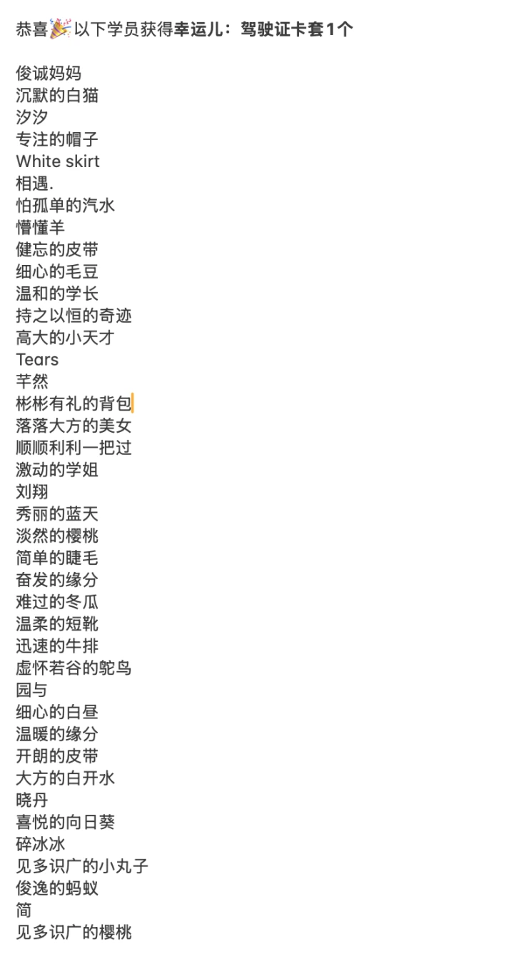 恭喜以下学员获得幸运儿活动奖励 ❗请保存下方二维码,在10月30日23:59前添加典典领取奖品,过时不候哦!