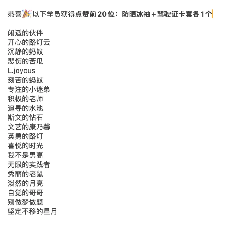 恭喜以下学员获得点赞前20活动奖励 ❗请保存下方二维码,在10月30日23:59前添加典典领取奖品,过时不候哦!