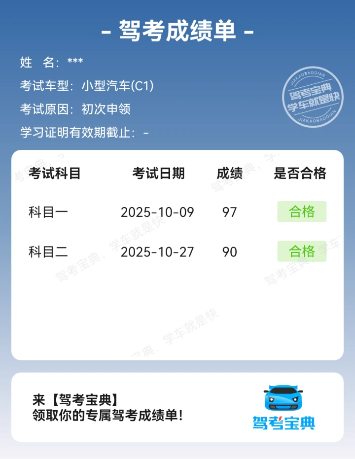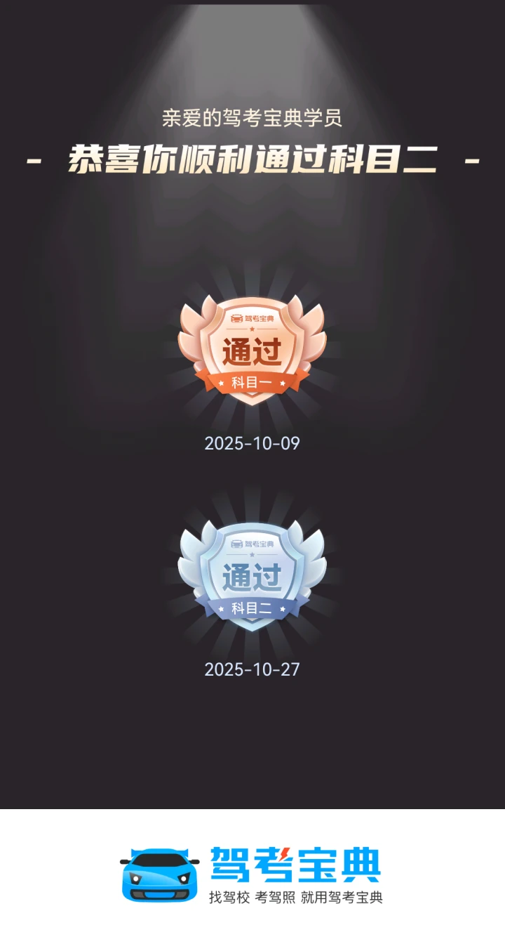 科二过考啦!始终要相信自己~学车就像修炼一样,一天比一天奈斯!