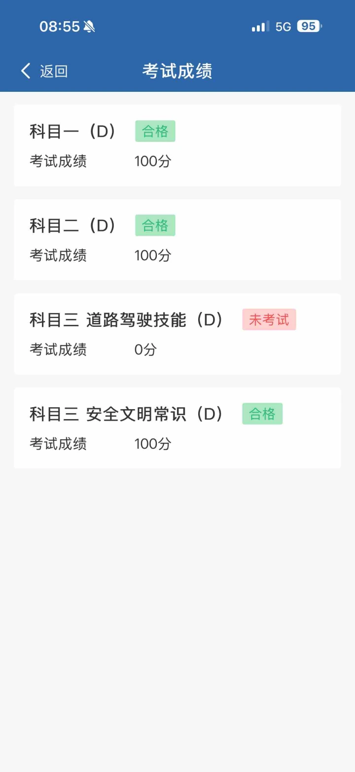 D证,全是100分,一把过,接不接 科三也100,但是当天下午才出成绩,才没截图到,目前已经拿证~