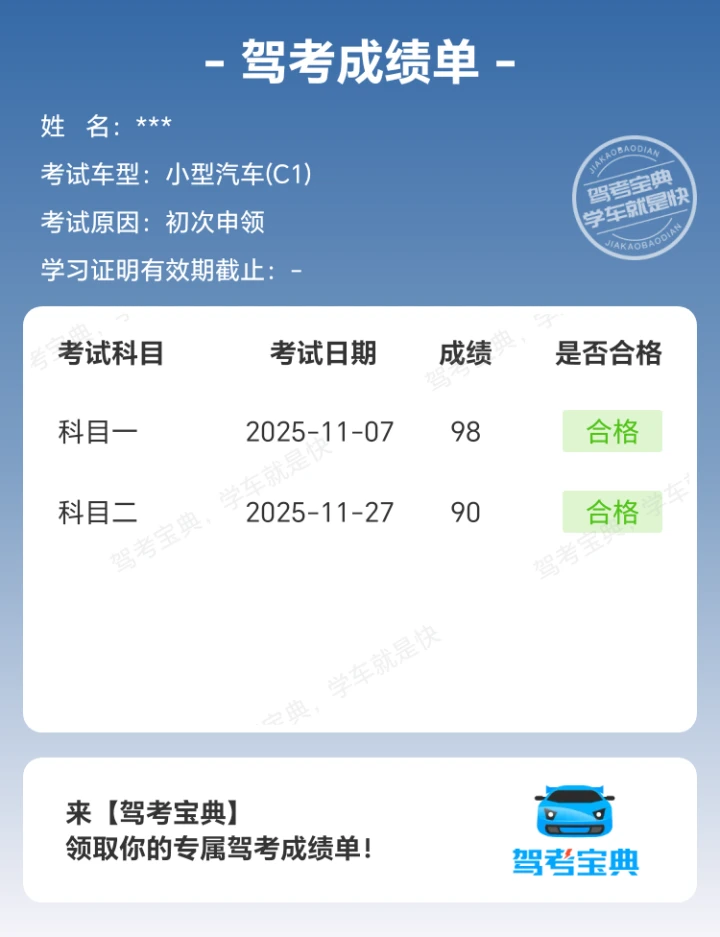 科二过考啦!始终要相信自己~学车就像修炼一样,一天比一天奈斯!