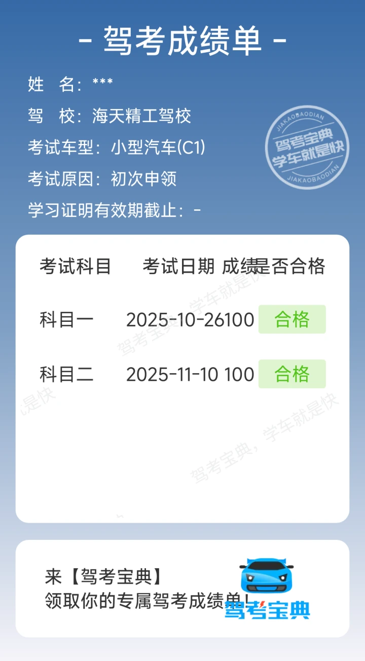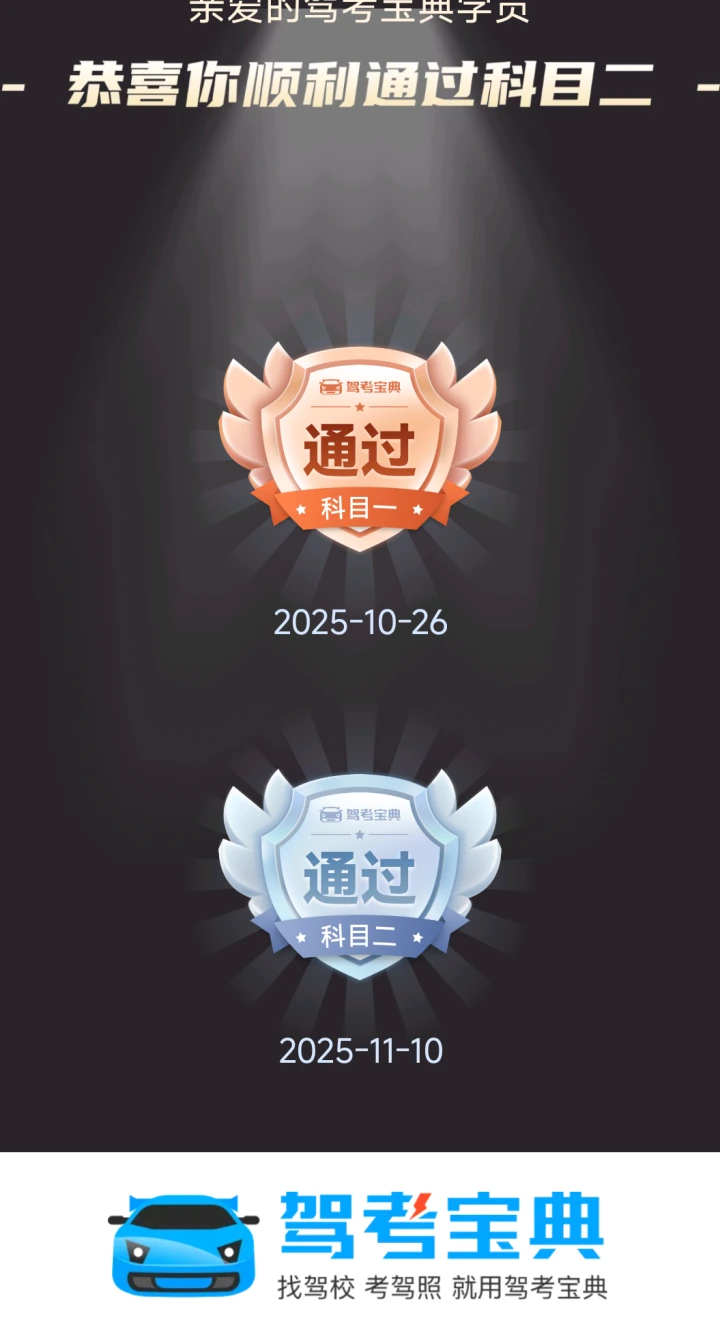 科二过考啦!始终要相信自己~学车就像修炼一样,一天比一天奈斯!