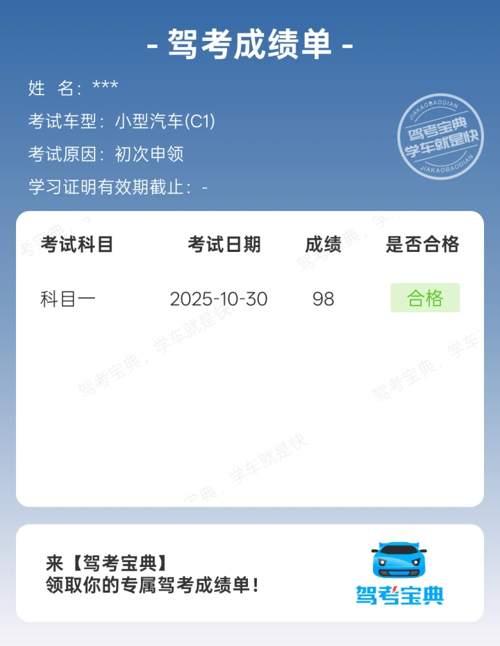 当前位置:首页>驾考圈>科目一>科一顺利通关,友友们收下这份驾