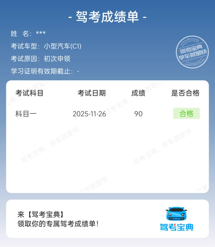 当前位置:首页>驾考圈>科目一>科一顺利通关,友友们收下这份驾
