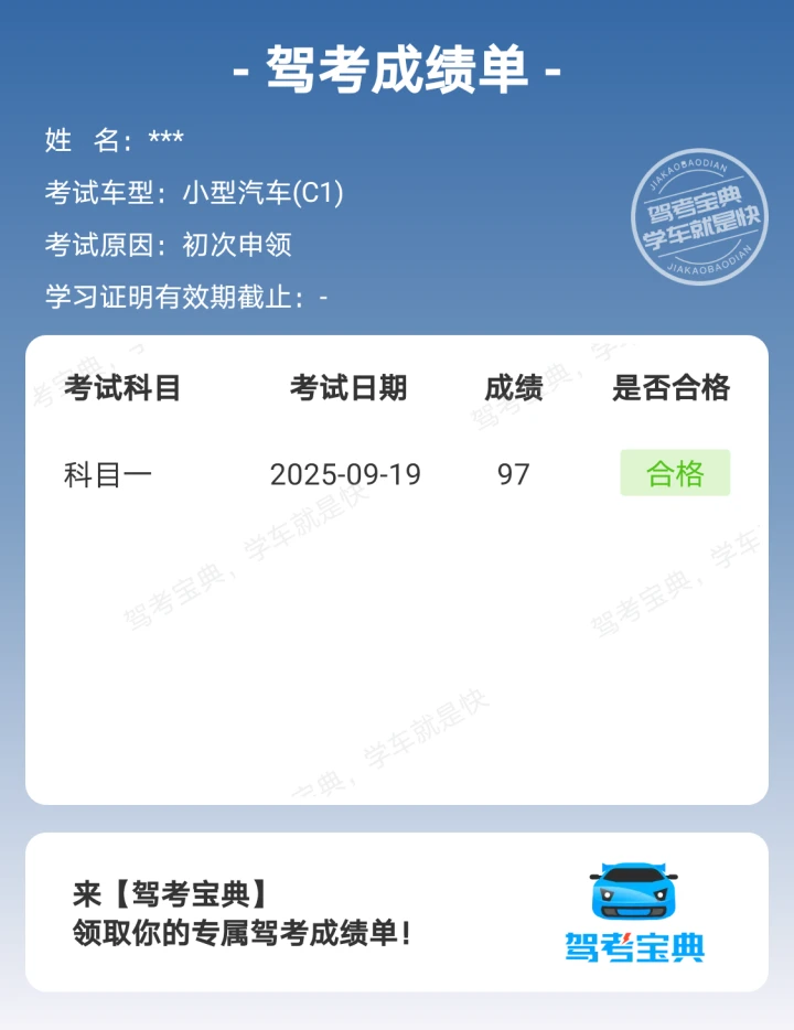 当前位置:首页>驾考圈>科目一>科一顺利通关,友友们收下这份驾