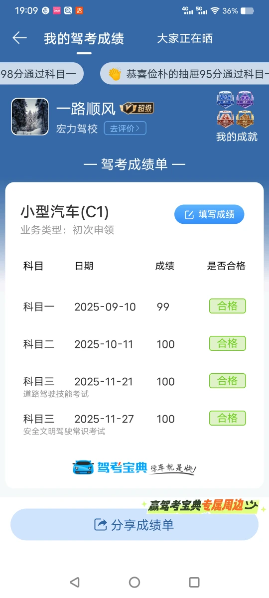 全部考过了!